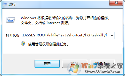 方法一:开始==运行==输入cmd /k reg delete "HKEY_CLASSES_ROOT\lnkfile" /v IsShortcut /f & taskkill /f /im explorer.exe & start explorer.exe 点击确定