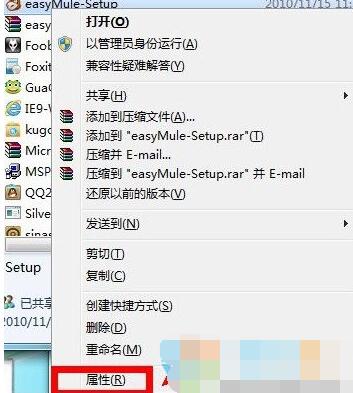 1、使用鼠标右键点击程序图标,然后选择“属性”,如下图所示:
