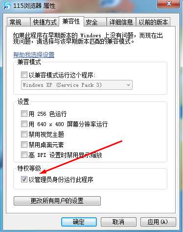 2、在弹出的窗口中,切换到 “兼容性”选项卡,在特权等级下勾选“以管理员身份运行此程序”,点击确定,如下图所示:
