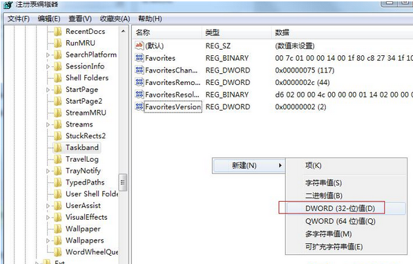 3、然后选中“Taskband”项然后在右侧窗口中新建一个“Dword”值,将其命名为“Minthumbzizepx”,如下图所示:
