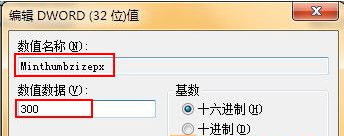 4、然后双击之前建立好的Dword值“Minthumbzizepx”,将数值设置为“400”;