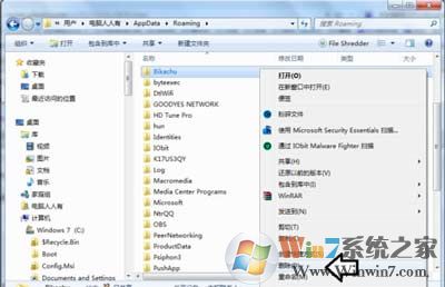 5、根据经验,这是操作系统中安装了风行软件,卸载之后,留下的软件残余(启动项)所致故障。从以下路径:C:\Users\(用户名)\AppData\Roaming\Bikachu找到Bikachu文件夹,将其删除;
