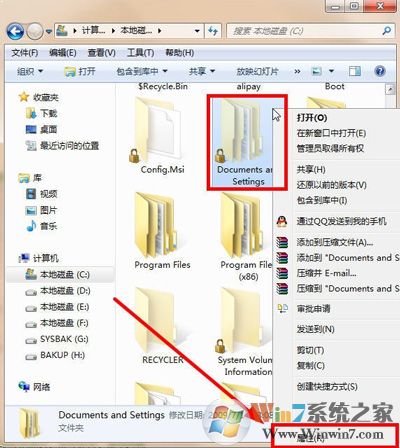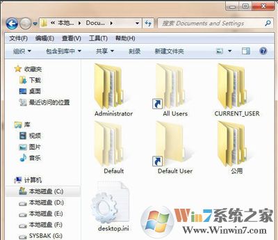 8、现在双击“Documents and Setting文件夹”,就能打开了,如图所示: