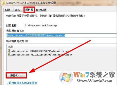 5、打开界面后,选择“所有者”选项卡,点击“编辑”,如图所示: