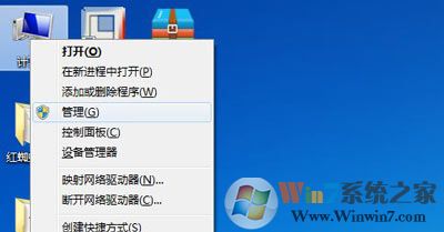 1、进入桌面,右键点击“计算机”图标打开菜单,选择“管理”;