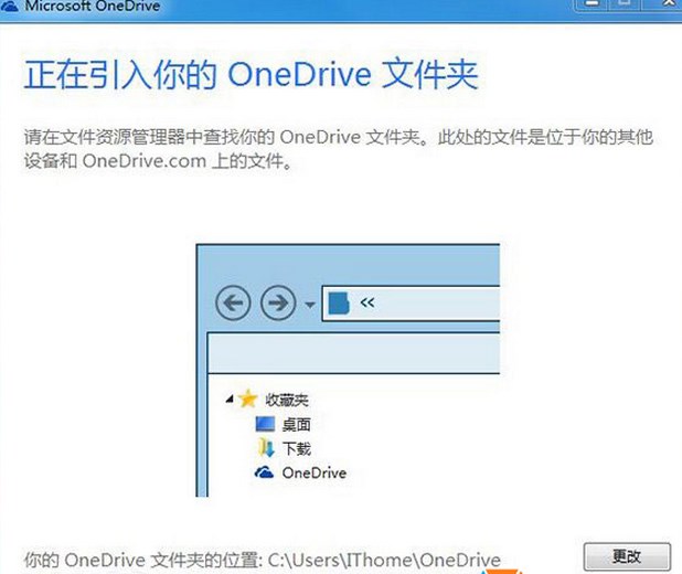 3、设置同步默认文件夹:OneDrive默认将同步文件存放在,例如C:\Users\IThome\OneDrive目录下,用户可以自行更改至其他路径;