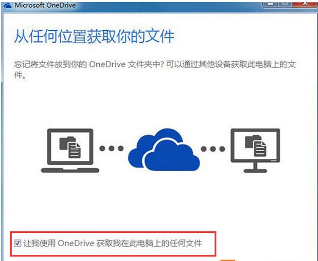 5、最后一项,勾选“让我使用OneDrive获取我在此电脑上的任何文件”选项