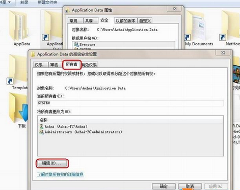 3、在“高级安全设置”选卡中点击“所有者”,然后点击“编辑”;