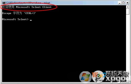 6.无需重启,再次运行Telnet,成功进入Microsoft Telnet Client。
