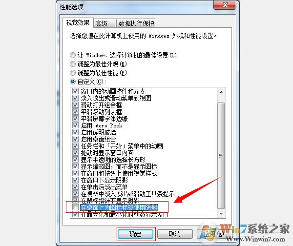 同样的回复方法也很简单,勾选上面的在桌面上为图标标签使用阴影一项就可以了,如果不行可以右击桌面—个性化,选择自己喜欢的一个主题就可以恢复Win7系统字体阴影了。