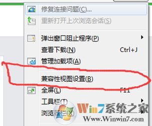 1、点击ie管理菜单“工具”,如果没有先按一下“alt”键选择“兼容性视图”,如图: