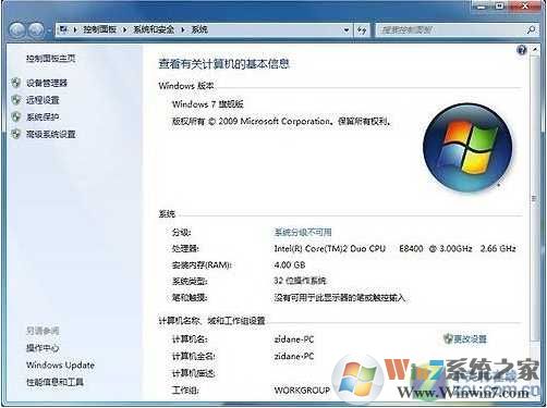最后重新启动计算机,打开Win7系统属性后我们可以看到4G内存完美显示出来。