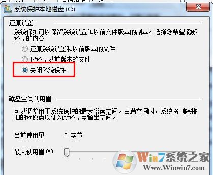 3、保护功能关闭后,我们还要将原来创建的还原点全部删除,如下图: