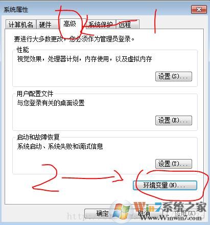 3.接着在“高级”选项卡,点击下面的 环境变量