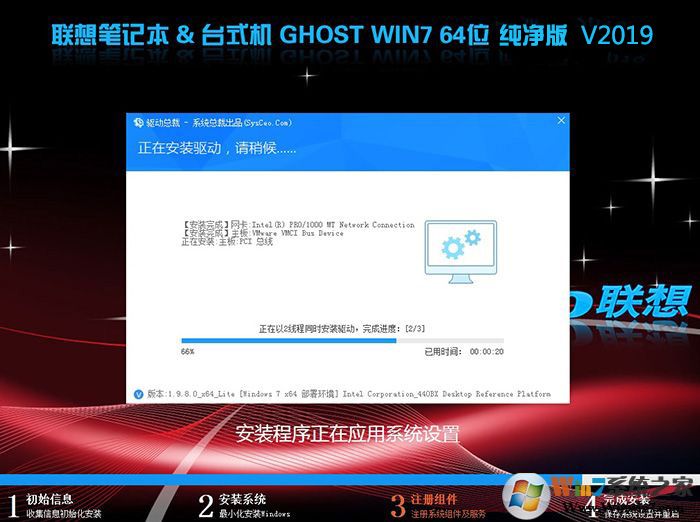 2、内置联想传用大容量专用驱动,智能安装,免除用户安装驱动的烦恼;