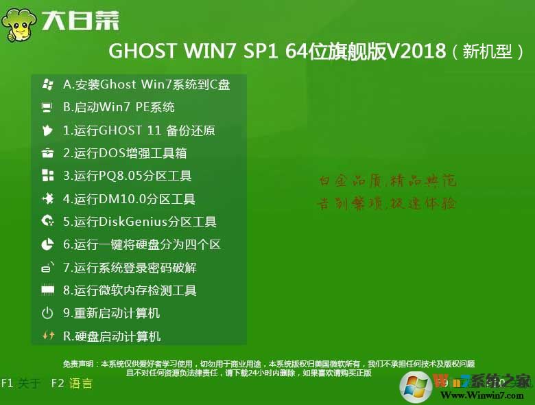 大白菜Win7 64位旗舰版新机型已经完美支持usb3.0 无需注入也不会出现键盘鼠标失灵的问题。注意事项: