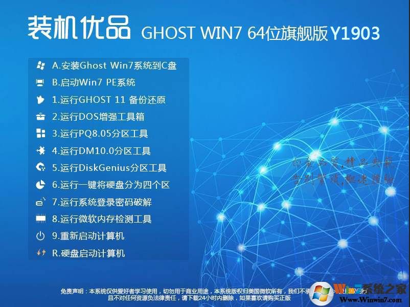 装机优品GHOST WIN7 64位稳定旗舰版安装配置需求: