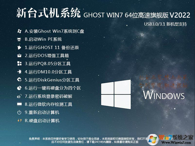 1、微软最新发布的2024年Windows7 64位镜像为母盘精心制作,针对台式电脑进行优化,稳定第一,速度第二;