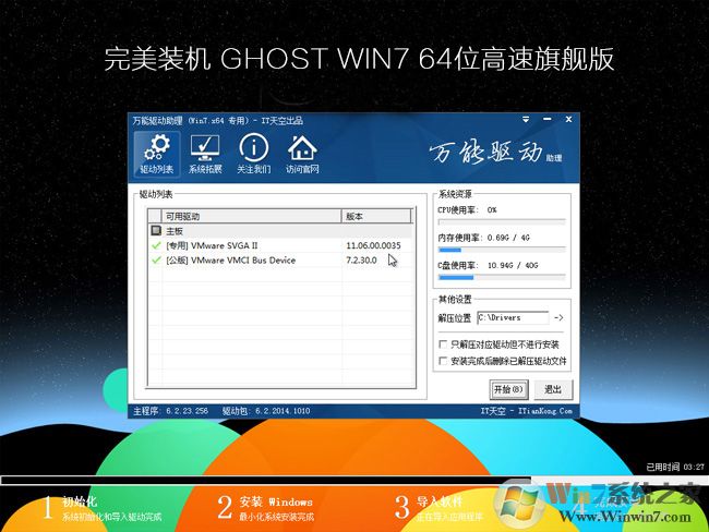 【完美装机】GHOST WIN7 64位高速旗舰版系统下载V2024部署过程快,自动激活、自动安装驱动程序。