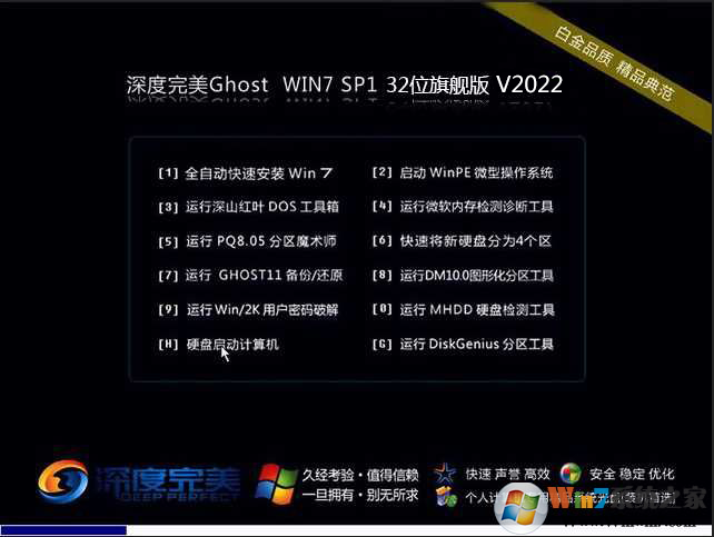 深度完美Win7旗舰版_Win7 32位完美装机版系统光盘启动界面,包含常用工具;