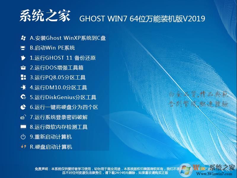 系统之家GHOST WIN7 64位万能装机版系统安装图集:安装桌面(包含常用软件,禁止开机启动,所有软件都可以按自己喜好安全卸载)