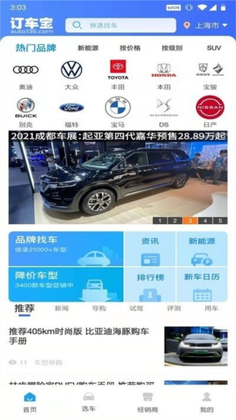 在线买车,帮助你查询各个城市,各种品牌的汽车经销商,预约买车更便利