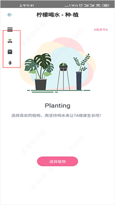 6、除此之外,柠檬喝水app还提供了十分有趣好玩的种植功能,可自由优选喜欢的植物来进行种植,而能否种植成功全靠用户的喝水情况啦。