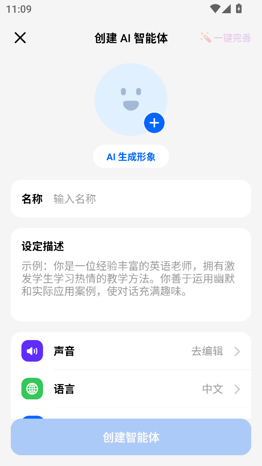 3、完善相关信息,输入名称之后,点击右上角可以一键完善