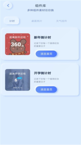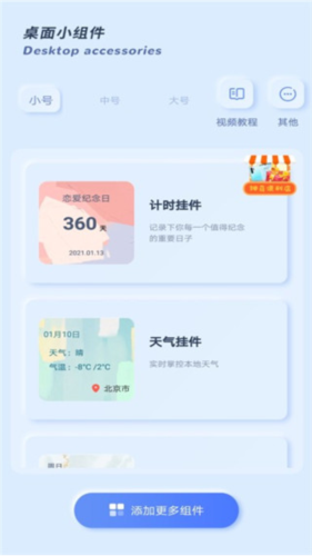 3、多种类型小组件——提供包括天气预报、倒计时、相册等多种类型的小组件。