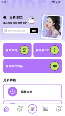 2、进入首页即可看到视频涂鸦、视频转gif、视频变速等功能