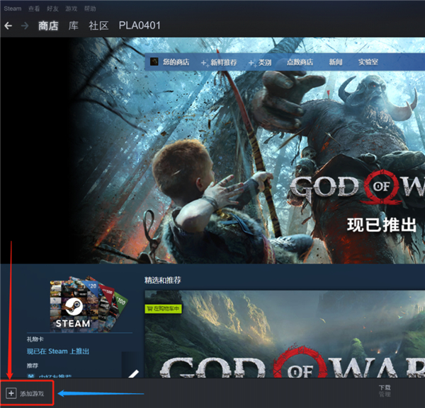 3、然后进入第三方激活平台如steam,点击Steam客户端左下方的“添加游戏”,选择“在Steam上激活产品”;