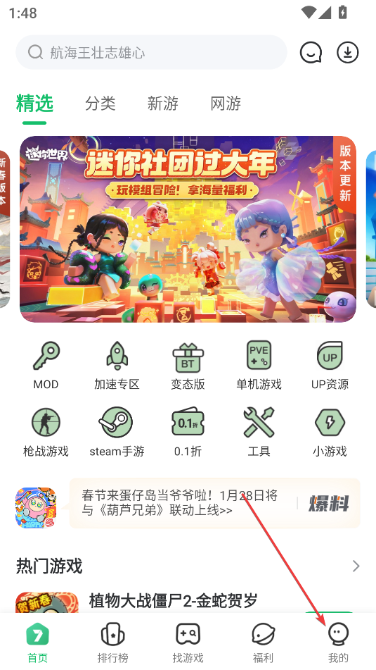 1、打开7723游戏盒,点击右下角我的
