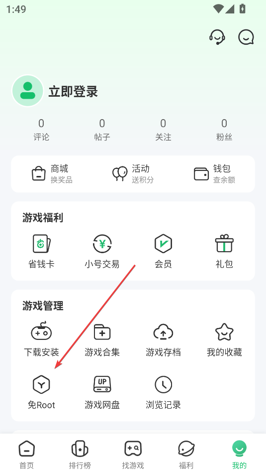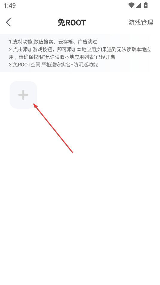 2、在游戏管理中点击免Root
