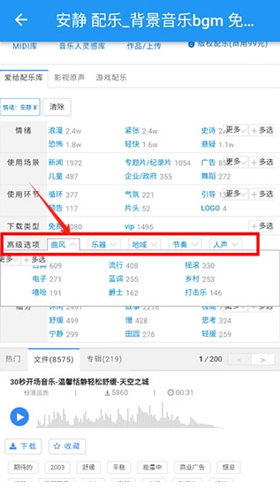 可以直接在上方进行素材查找,也可以自己下滑找素材