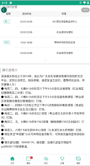 中羽联整合了全国范围内的各类羽毛球活动,无论你是刚入门的新手,还是技术精湛的高手,都能在这里找到契合自身水平和兴趣的活动,满足不同用户的需求。