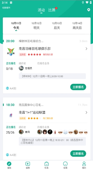 1.精准定位,轻松赴约:能快速查找身边正在进行的羽毛球活动,还可直接导航至球馆,不错过每一次挥拍机会。