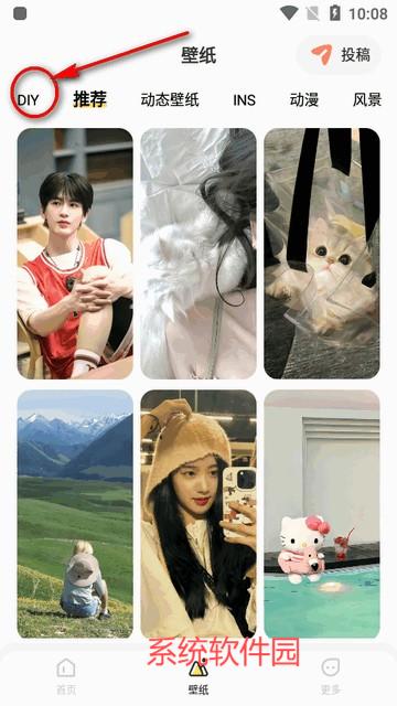 3.在壁纸页面中,选择 “diy 壁纸”,参考图示进行操作。