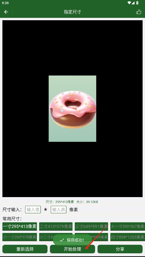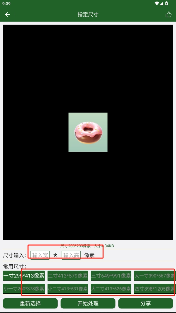 3.选择需要的工具例如指定尺寸进入,选择你要编辑的图片点击完成