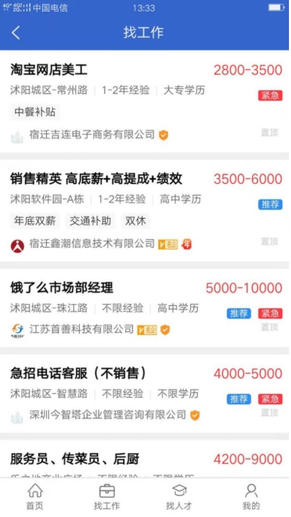 3、在找工作界面可以看到很多实时招聘信息