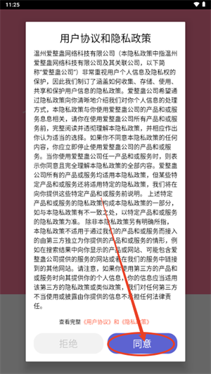 2.开启软件,点击同意相关协议。