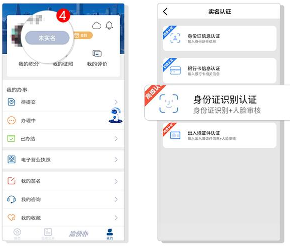 4.账号登录成功后,进入“我的”页面,点击头像旁边“未实名”进行身份认证。