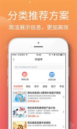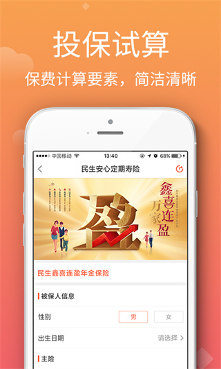 民生保险是一个民生人寿官方推出的智能化保险服务平台,让您足不出户就能享受全方位的保险服务。使用这款软件,你不用担心没有晦涩难懂的保险条款,只有专业顾问为您量身定制的投保方案。就算您对保险一窍不通,我们也能通过清晰的讲解,让您了解每个细节,真正做到明明白白的买保险。立即下载,开启您的智能保险生活。
