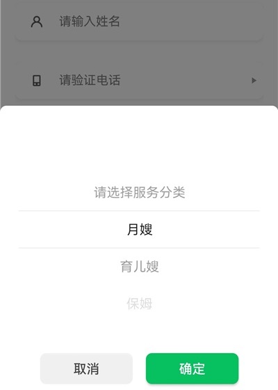 3、先选择服务分类,共有六种可选:月嫂、育儿嫂、保姆、陪护、钟点工、保洁。