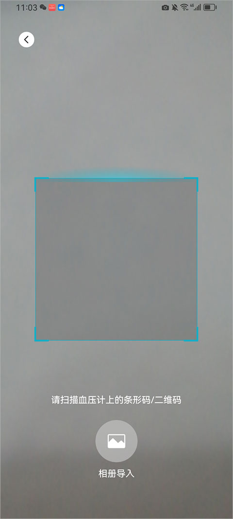 2、根据页面提示,使用手机相机扫描血压仪上的条形码或二维码,完成设备识别。