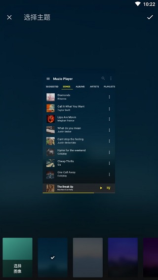 初始运行时,用户可根据个人喜好选择主题。系统提供数十款不同主题供选择,基本满足大部分用户需求,也可选择手机本地图片,打造个性化音乐播放器。主题设置中,还提供多种播放器颜色选项,喜欢自定义的朋友千万别错过。