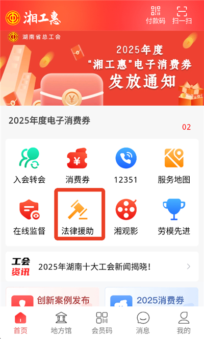 湘工惠App是湖南省总工会专为全省各级工会组织和广大工会会员打造的综合性服务平台,集思想引领、活动参与、普惠服务于一体,是职工朋友身边贴心的“移动工会”。 对于工会组织而言,湘工惠提供了服务号开设、活动管理、资讯发布等便捷功能,帮助工会更好地组织活动、发布政策、维护会员权益。对于广大职工来说,功能更是丰富实用:入会转会在线办理,无需跑线下;专业法律援助随时咨询,解决维权难题;困难帮扶申请一键提交,温暖直达。还有超棒的普惠服务,电子书店免费看书、名师讲座在线学习、女工班开设烹饪插花等课程,提升技能全靠它。 平台还支持水电气缴费、团购优惠、消费券使用等生活服务,积分兑换好礼拿到手软。工会动态、劳模故事实时推送,让你及时了解工会新鲜事。