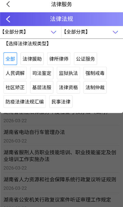 2、在法律服务页面中,点击“法律法规”功能。