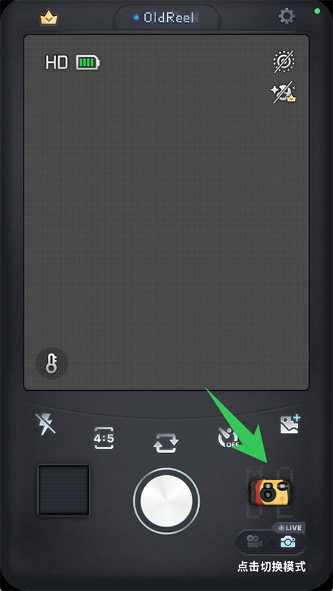 1、打开OldReel相机App后,点击右下角的相机图标进入拍摄界面。