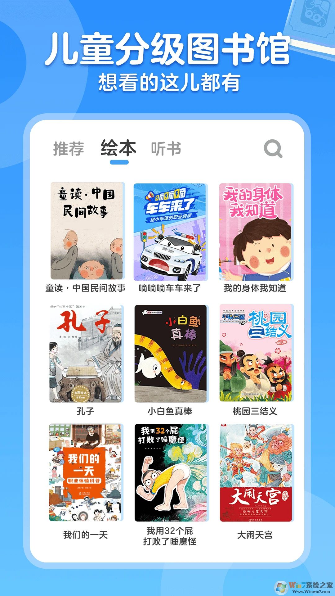 3、儿童绘本图书馆:馆藏10000+优质绘本、20000+有声故事,充分激发孩子的阅读兴趣,丰富阅读主题让孩子爱上阅读;