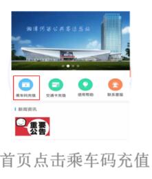 1、下载安装之后打开湘潭出行APP,进入首页,在页面中选择乘车码充值;